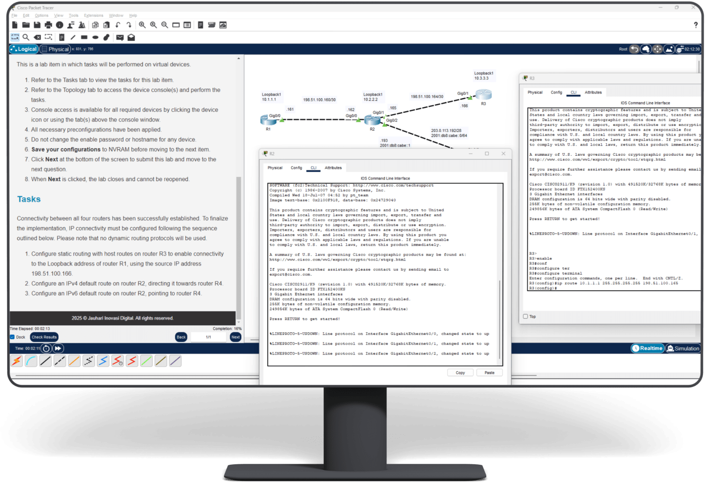 Kamu bisa langsung praktik konfigurasi jaringan lewat 30 file lab Packet Tracer Activity (PKA) yang dirancang semirip mungkin dengan soal Performance-Based Lab di ujian CCNA yang sebenarnya.