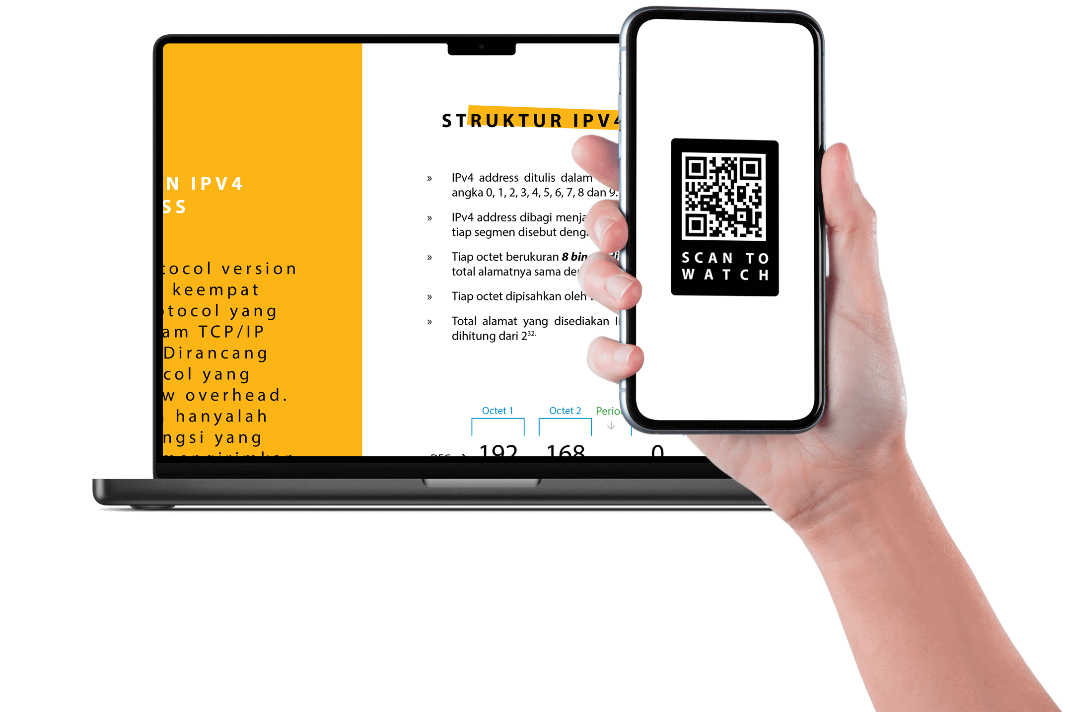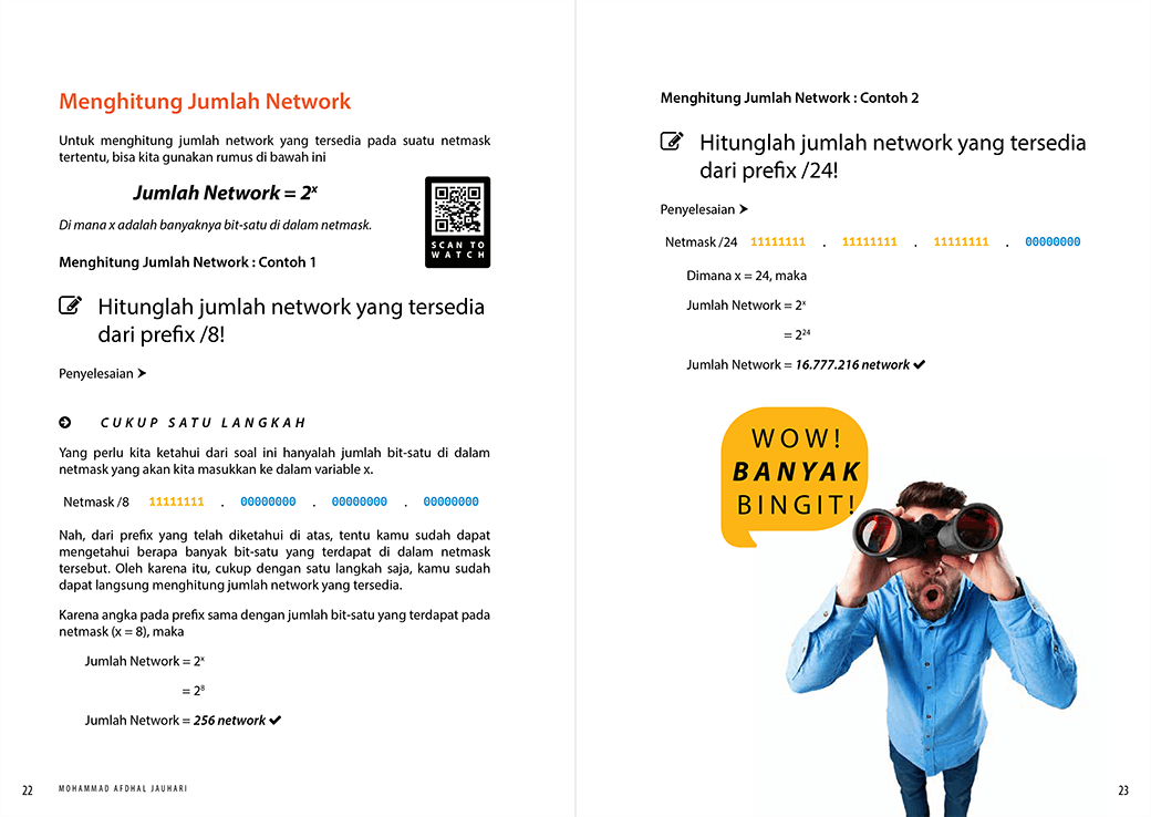 Kini, Buku Jago Subnetting sudah dilengkapi dengan video tutorial di beberapa bagian pembahasannya, memberikan pengalaman pembelajaran yang lebih interaktif dan komprehensif. Kamu hanya perlu memindai kode QR yang terdapat di beberapa bagian pembahasan untuk mengakses video tutorial yang relevan.